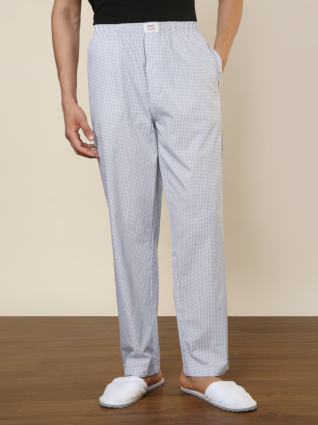 Sleepz Men White Printed Regular Fit Cotton Pyjama